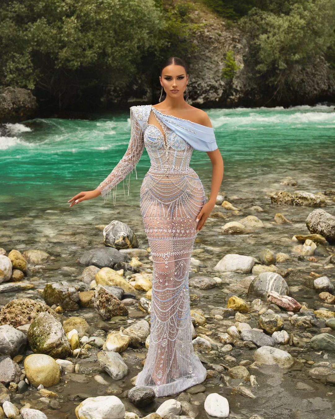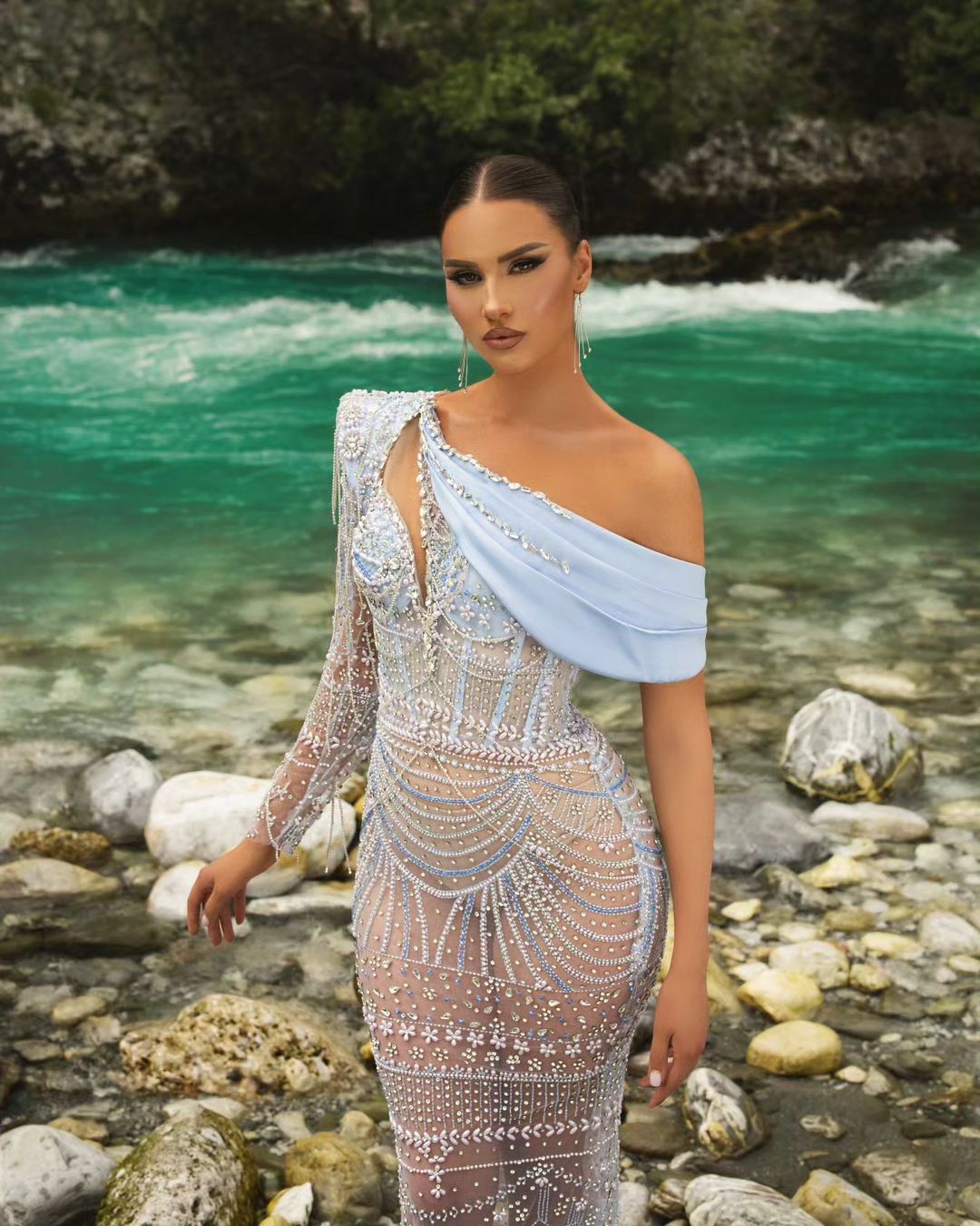Experience the sophistication of sapphire with this elegant dress